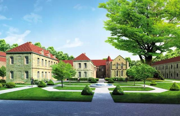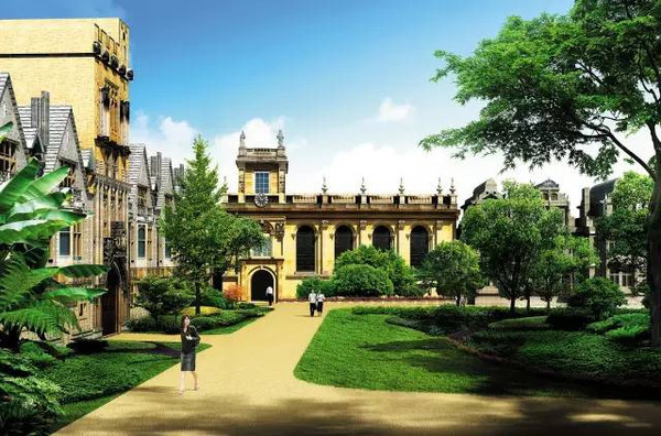 參考牛津大學(xué)莊嚴(yán)的建筑.征創(chuàng)造街區(qū),結(jié)合以灰色板石為材料的大坡度.屋.、米色萊姆石外墻、草坪里院和回廊,使整個(gè)街區(qū)都可以感受到猶如知識(shí)殿堂般的氛圍.
