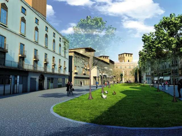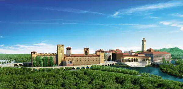 以維羅納中世紀(jì)的古城為原型,將景觀水路還原到街區(qū)內(nèi),結(jié)合.樹(shù)幟的古塔、壯美的廣場(chǎng)、曲徑通幽的石街,打造尺度宜人的街巷風(fēng)情,形成了富于變化的組團(tuán).
