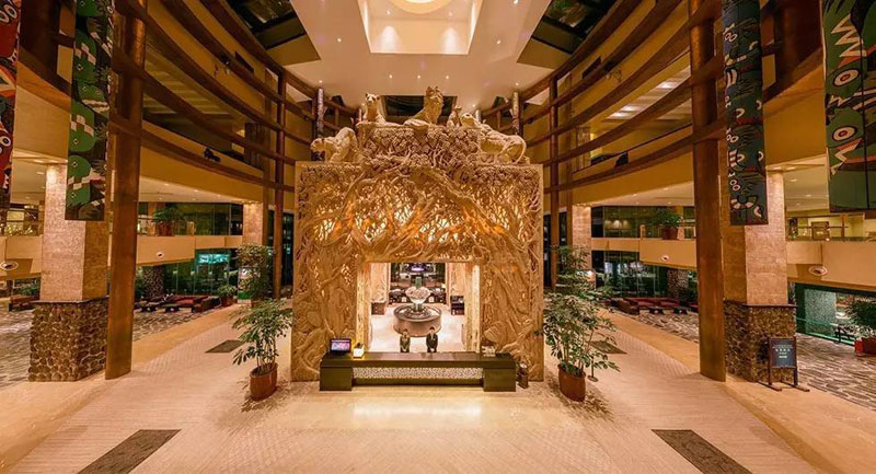 目前,廣州長隆僅有一家酒店,內含1500間生態主題客房,環繞著中庭動物島,設計夢幻又清奇。
